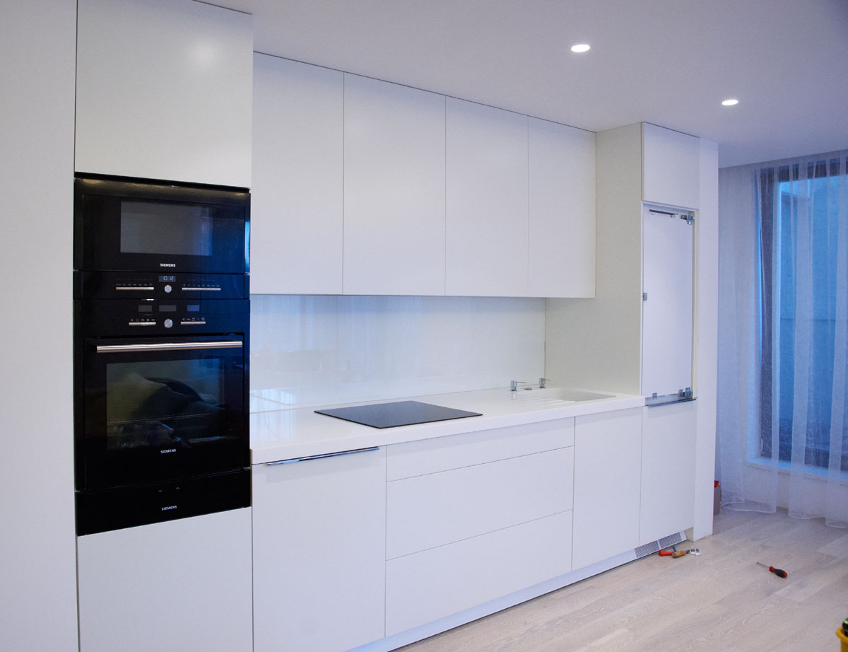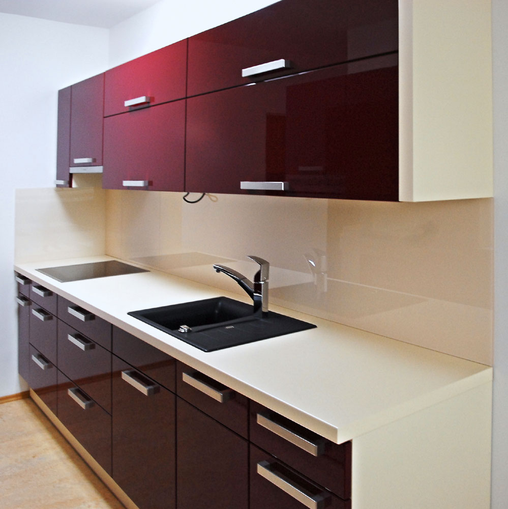 Naše firmá má za dobu své 20ti leté existence bohaté zkušenosti s montáží lakovaných skel převážně jako obklad do kuchyňské linky. Při objednání montáže (email, telefonem, osobní návštěva prodejny), si s technikem domluvíte termín změření ( toto je zdarma ), který Vám bude nejlépe vyhovovat. Při zaměřování má technik s sebou vzorník barev, takže si rovnou vyberete barvu, které bude nejlépe ladit s Váší kuchyňí. Není problém zaměření objednat kteroukoliv hodinu a čas, rádi se vašim požadavkům přizpusobíme. Po zaměření Vám bude poslána cenová kalkulace a při odsouhlasení se zadá zakázka do výroby a až bude obklad připraven na montáž naše firma se s Vámi spojí a domluví termín montáže. Doba dodání trvá cca týden od zaměření.